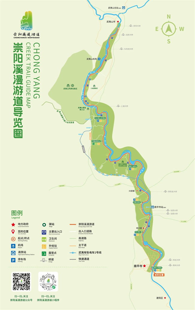 崇陽溪漫游道沿途設有驛站、公廁、亭臺、停車場、充電樁、餐飲住宿、節(jié)點公園等服務設施,并提供觀光車、自行車等不同的游覽方式,是觀光攝影、騎行健身、戶外露營、美食品鑒、親子休閑、團建拓展等活動的絕佳去處。