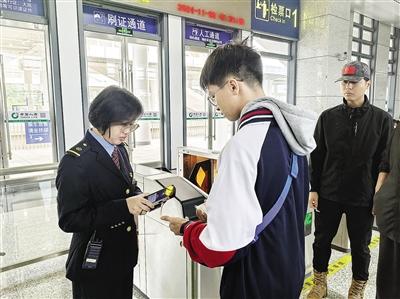 延平站工作人員正在為研學(xué)團(tuán)學(xué)生檢票(受訪者供圖)