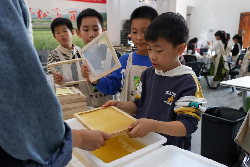 日前,在松溪縣鄭墩鎮(zhèn)萬(wàn)前村“蔗里有趣”研學(xué)基地,一場(chǎng)獨(dú)具特色的百年蔗研學(xué)之旅拉開帷幕,吸引許多小學(xué)生踴躍參與。孩子們通過(guò)百年蔗科普小課堂、榨蔗汁、蔗渣造紙、蔗紙作畫等環(huán)節(jié),在鍛煉動(dòng)手能力的同時(shí),領(lǐng)略到百年蔗別具一格的魅力。(李夢(mèng)凌 蘇永健 攝)