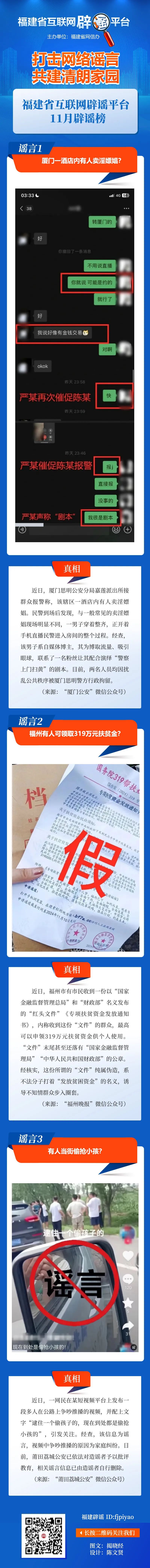打擊網(wǎng)絡謠言 共建清朗家園 福建省互聯(lián)網(wǎng)辟謠平臺11月辟謠榜