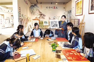“非遺技藝需要一代又一代地傳承,同時也需要不斷地創(chuàng)新發(fā)展。我在版畫的教學實踐中歸納總結(jié)了不少經(jīng)驗,提出了一些操作性強的建議意見,想要讓版畫創(chuàng)作更易于上手,讓版畫產(chǎn)品更加貼近生活,讓普通消費者也更能接觸到?!比~美琴從2017年開始系統(tǒng)性地開展研究,于今年完成《賡續(xù)傳統(tǒng) 創(chuàng)新轉(zhuǎn)化——初中版畫教學守正創(chuàng)新8年》實踐研究報告,并獲得了南平市教學成果獎三等獎。該研究報告從版材、技術(shù)、表現(xiàn)形式、教學方式以及學科融合五個方面進行創(chuàng)新探索,為開展青少年版畫教學的學校提供了借鑒經(jīng)驗和參考模式。