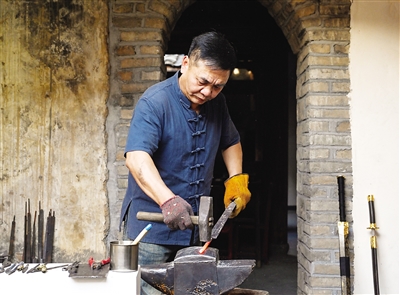 非遺技藝傳承人葉向春在制作湛盧茶刀 (張行健 攝)