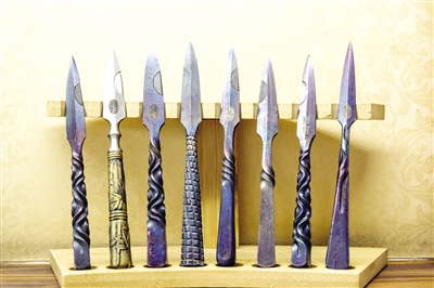 “最近,不少動漫、游戲公司找我合作,我為他們專門設(shè)計打造了一些寶劍。打造這些寶劍的收費能有好幾萬甚至幾十萬。這無疑是對我們技藝和產(chǎn)品的高度認可?!比~向春說,目前,預購寶劍、茶刀的訂單已應(yīng)接不暇,許多客戶訂購寶劍數(shù)量高達上萬把,他堅持純手工制作,短時間內(nèi)難以滿足生產(chǎn)需求。這些年,在當?shù)卣囊龑Ш椭С窒?,他開始招收徒弟,傳承技藝,并與當?shù)刂新毿i_展合作,開設(shè)教學實踐班,為湛盧寶劍鑄造技藝的傳承和發(fā)展注入新的活力?!叭缃?,我們既有人才,又有訂單,還有廣泛的受眾基礎(chǔ)。我堅信會有越來越多人加入這行,共同推動其成長為一項成熟產(chǎn)業(yè),最終一定能做大做強,走出國門、走向世界。”