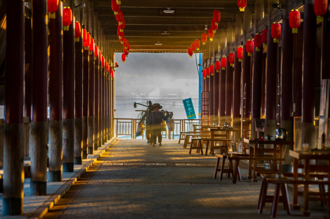 臨近中午,家家戶戶飄出飯菜香味,有村民笑著在河邊洗菜、聊天,村里一座古樸的木廊橋上,老人閑坐聽著廣播,一旁的小孩趴在欄桿上讀書……一派寧靜祥和的景象。