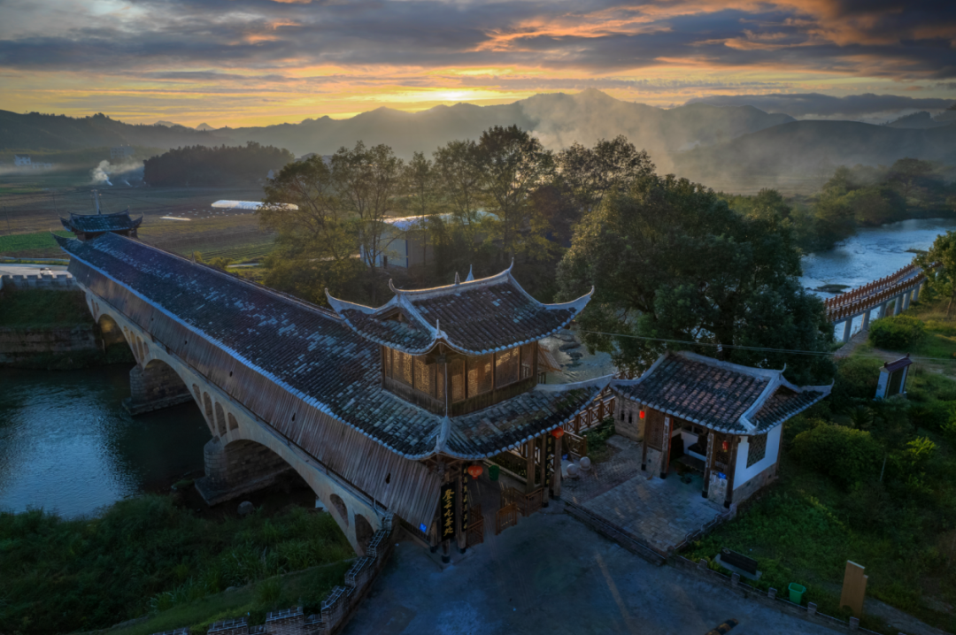 小橋霞抱村(李炳華 攝)