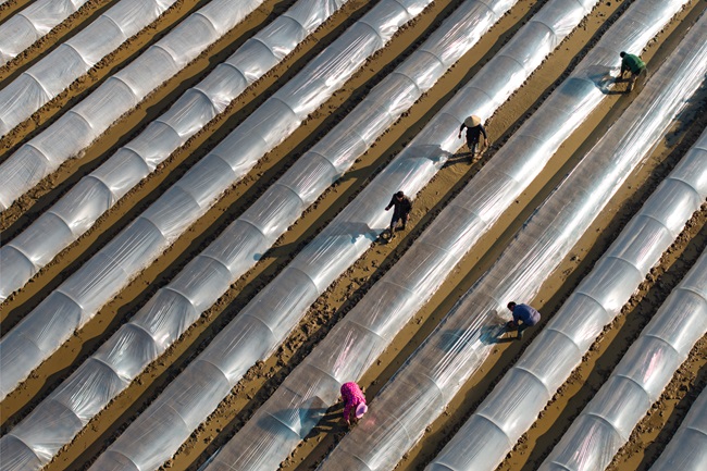眼下,正值水稻育秧的關(guān)鍵時期,1日,在建陽區(qū)徐市鎮(zhèn)北岸村鑫榮家庭農(nóng)場,工人正搶抓晴好天氣為秧盤覆蓋薄膜。