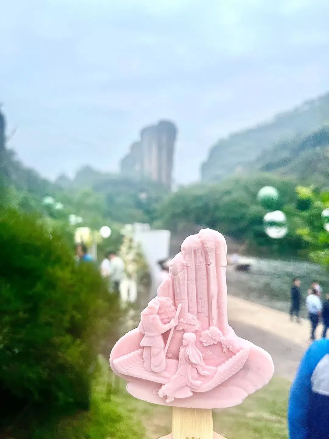 游客舉著文創(chuàng)雪糕打卡武夷山玉女峰