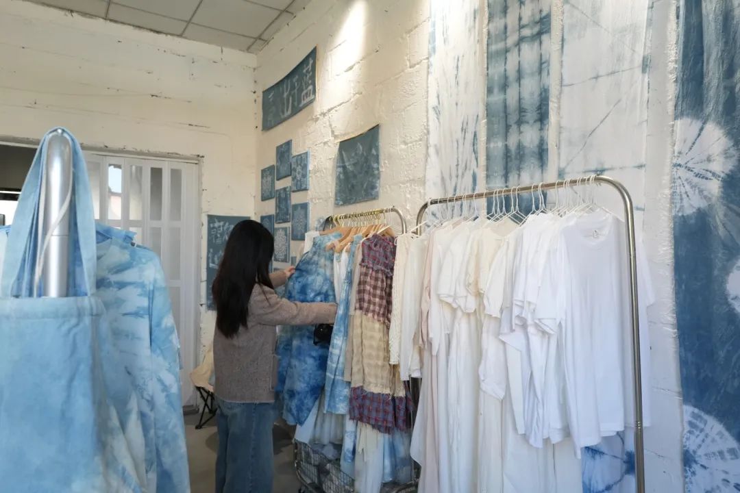 在斑藍(lán)草木染體驗(yàn)館,“00后”店主何張慧將植物扎染工藝與文創(chuàng)結(jié)合,以互動(dòng)體驗(yàn)重構(gòu)年輕人與非遺文化的連接方式。扎染創(chuàng)意畫、扎染裙子、扎染發(fā)帶、扎染手串、扎染冰箱貼……游客不僅能在體驗(yàn)館親手制作扎染作品,更可將凝結(jié)個(gè)人創(chuàng)作靈感的扎染文創(chuàng)作品帶回家。
