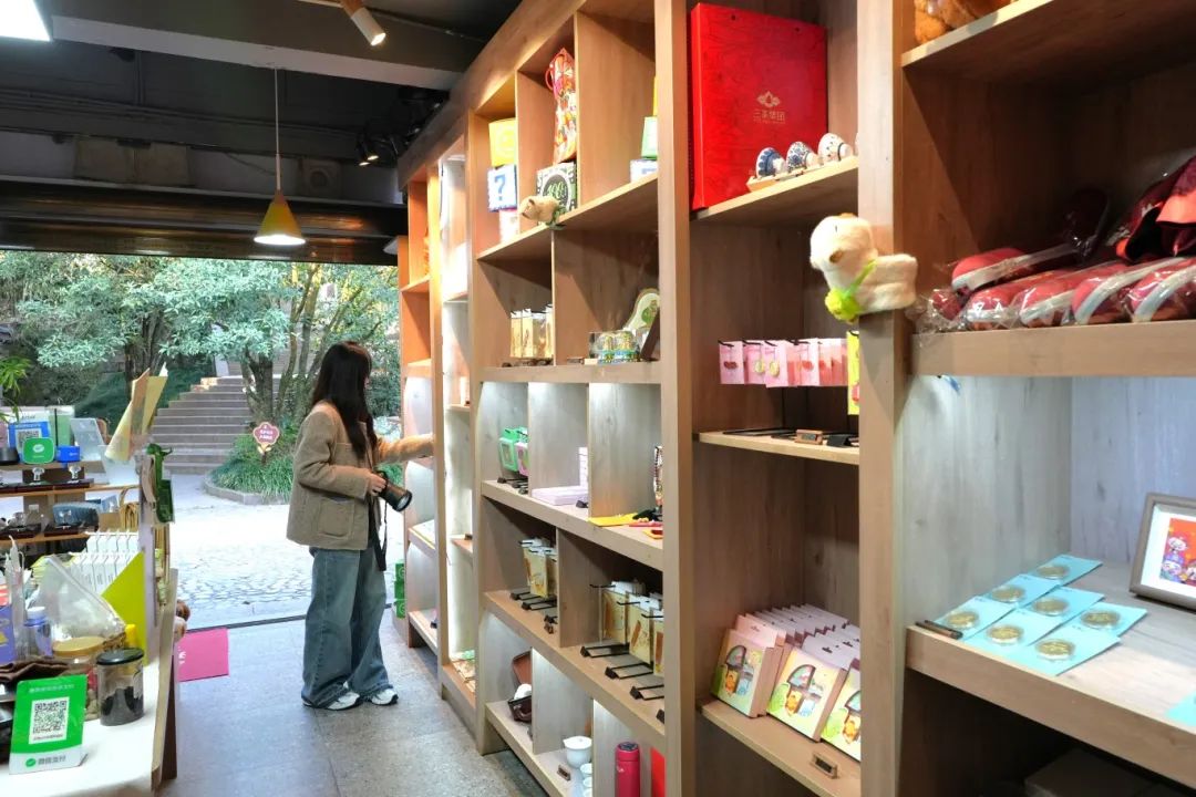 游客在文創(chuàng)店內(nèi)選購(gòu)