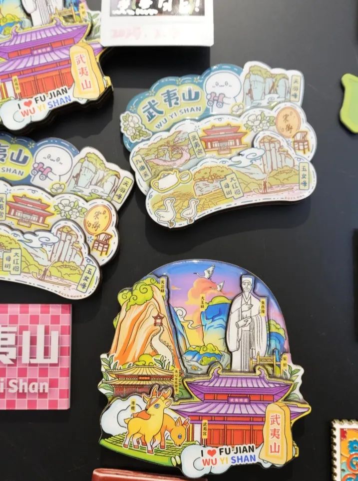 冰箱一開一關(guān)里,流動(dòng)著武夷山的九曲記憶,有“磁吸力”的冰箱貼是“能帶回家的風(fēng)景”,也是景區(qū)的延伸,拉近自然風(fēng)光、歷史文化與年輕人的距離,融入日常生活。