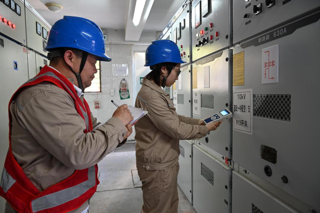 國網(wǎng)邵武市供電公司員工正在邵武市第一中學(xué)配電室檢查供電設(shè)備運行狀況。