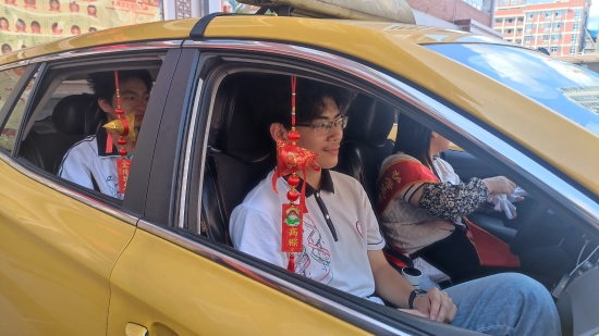 在邵武市第四中學(xué)多媒體教室,宣傳民警為高三考生代表及出租車司機(jī)帶來高考出行安全講座,重點(diǎn)講解了考前考生交通安全注意事項,以及出租車駕駛員送考期間的安全駕駛規(guī)范,為高考出行筑牢安全防線。隨后,為考生代表送上寓意“金榜題名”的“高考粽”,以趣味互動形式傳遞美好祝愿,緩解考生考前壓力。緊接著,15輛掛有粽子掛件的出租車整齊列隊,考生依次上車體驗“一舉高粽”的美好寓意。社區(qū)還向出租車駕駛員代表贈送粽子,致敬這群默默奉獻(xiàn)的“城市擺渡人”,感謝他們?yōu)楦呖及踩鲂凶鞒龅呢暙I(xiàn)。