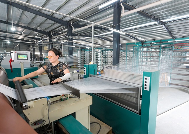 12日,在位于松溪縣的福建本真紡織科技有限責(zé)任公司生產(chǎn)車間,工人在整經(jīng)機前作業(yè)。新型輕紡產(chǎn)業(yè)是松溪縣域重點產(chǎn)業(yè)之一。近年來,該縣通過建立“鏈長+鏈主+專班”工作機制,不斷推動“一根絲”越拉越長。去年,松溪縣新型輕紡規(guī)上企業(yè)實現(xiàn)產(chǎn)值12.72億元,同比增長16.2%,占全縣規(guī)上工業(yè)的33.0%。(張行健 陳穎 攝)