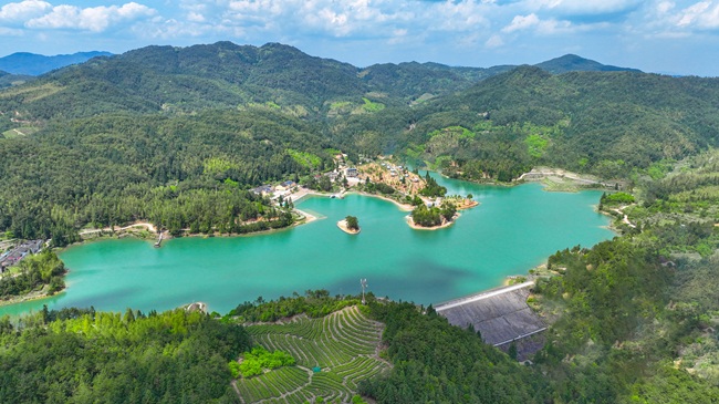 近年來,何山村立足資源稟賦,發(fā)展生態(tài)旅游,持續(xù)深化“巡山交樹”機(jī)制,組織開展河湖環(huán)境整治專項行動,通過河道景觀提升,促使水生態(tài)環(huán)境改善,建成湖心島、湖邊游步道等,以點帶面構(gòu)建“河暢、景美、水清、岸綠、人和”的詩意棲居地。