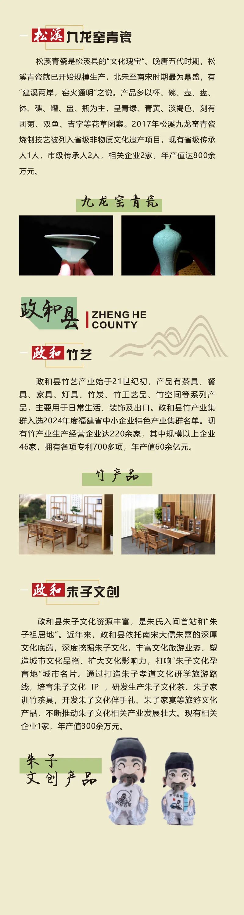 政和縣的竹藝文創(chuàng)藏著自然的巧思,竹的靈秀在小物中盡顯;朱子文創(chuàng)讓理學(xué)智慧走進(jìn)日常,一器一物都是哲思的溫柔落地。