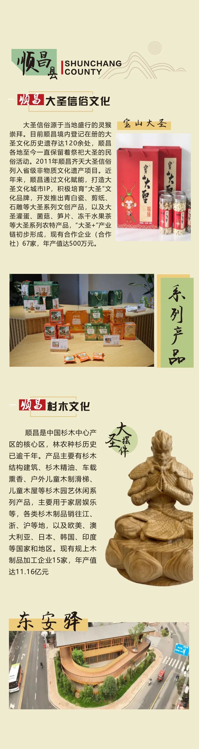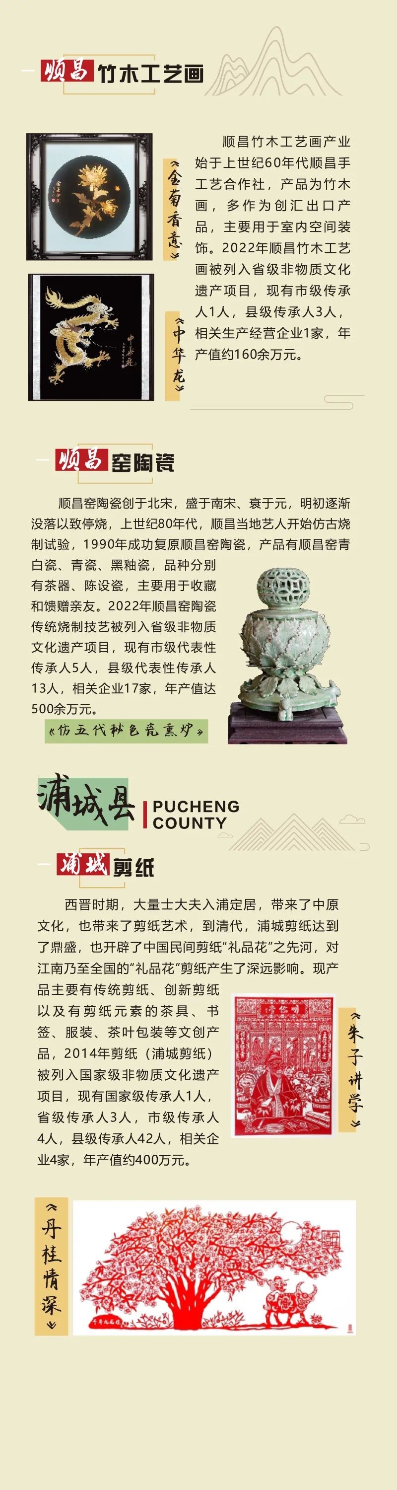 順昌縣的大圣信俗文化延續(xù)著神話(huà)的浪漫,藏著孩童的向往;杉木文化訴說(shuō)綠色傳承,見(jiàn)證人與自然的共生;竹木工藝畫(huà)與順昌窯陶瓷,皆是指尖的匠心之作,勾勒出生活的詩(shī)意。