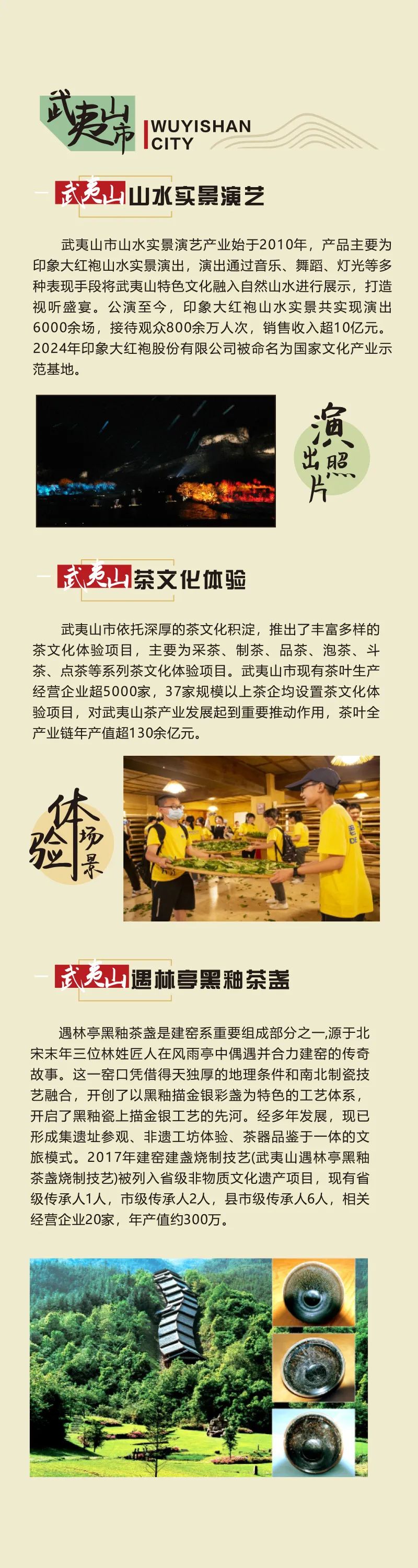 武夷山市的山水實(shí)景演藝讓你“人在畫(huà)中游”,沉浸式跌入自然與人文交織的夢(mèng)境;茶文化體驗(yàn)解鎖一片葉子的千年傳奇;遇林亭黑釉茶盞里,藏著宋代茶席的風(fēng)雅。