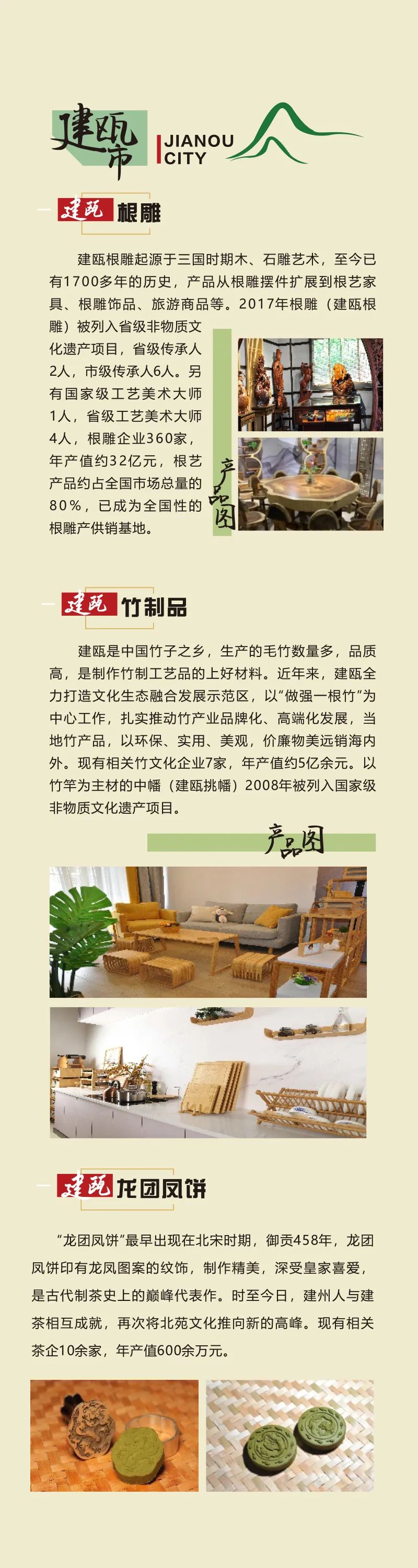 建甌市的根雕化腐朽為神奇,讓枯木重獲新生;竹制品藏著生活智慧,實(shí)用與雅致兼得;復(fù)刻的宋代龍團(tuán)鳳餅,一泡便知古韻悠長(zhǎng),茶香里飄著千年故事。