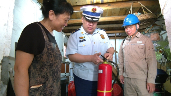 當(dāng)日上午九點(diǎn),在邵武市通泰街道北門社區(qū)低保戶黃奶奶家中,消防隊(duì)員、供電搶修人員與液化氣公司工作人員各司其職,展開細(xì)致排查。消防員認(rèn)真檢查房屋消防安全隱患,詳細(xì)講解家庭防火、初期火災(zāi)撲救及逃生技能,還手把手教老人使用滅火器。“你看這里有個(gè)綠色的銷,把它揪掉,這個(gè)圈就出來了,之后拿住頭部一捏,對(duì)著火源噴就行?!毕辣O(jiān)督員現(xiàn)場(chǎng)耐心指導(dǎo)。
