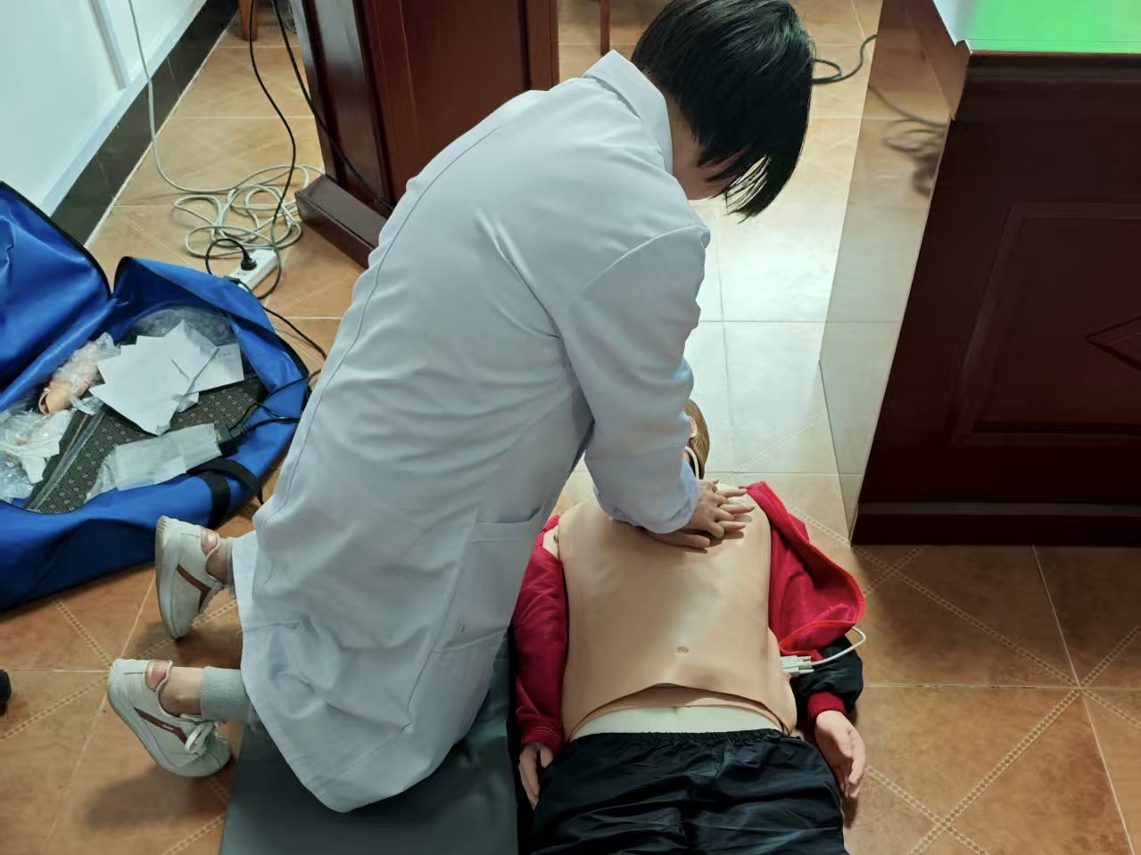 家庭醫(yī)生服務(wù)團隊還針對和平古鎮(zhèn)4A級旅游景區(qū)游客應(yīng)急救援的需求,開展了防中暑、外傷應(yīng)急處理以及心肺復(fù)蘇技能實操培訓(xùn),每一個環(huán)節(jié)都嚴格按照標(biāo)準流程執(zhí)行,確保人人都能在緊急時刻“敢上手、會操作”,為守護群眾、游客生命健康增添了底氣。