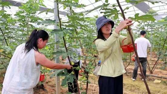 游客吳巧鳳說道:“今天是第一次來這里,聽朋友說這兒的無花果特別甜,所以特意來體驗。你看,這個無花果確實比普通的要甜很多,汁水也更足。這里環(huán)境很好,我們吃得也很放心。”