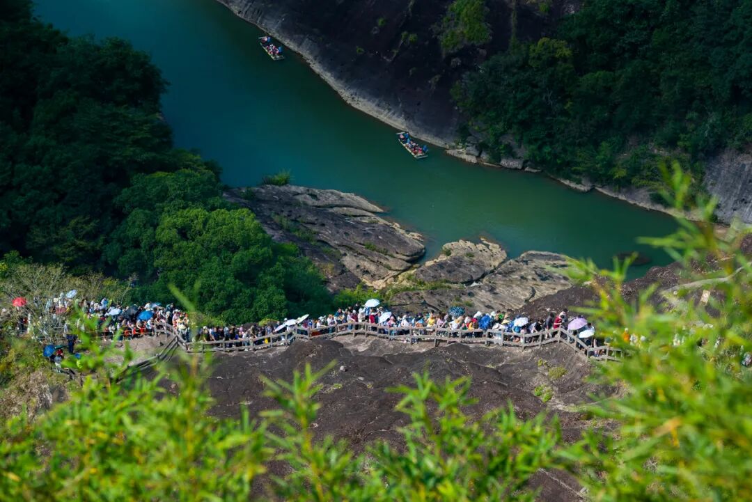 便民舉措的扎實落地,讓“安心游”少了后顧之憂。武夷山開放所有國有停車場,新增3000個臨時免費車位,破解自駕游客“停車難”痛點;針對消費維權,景區(qū)建立的投訴“先行賠付”機制高效運轉,5分鐘內受理、30分鐘內處置,真正實現(xiàn)“維權不跑腿”;此外,閩北首支女子騎警隊穿梭景區(qū),既維護秩序,又幫游客尋回失散同伴、指引路線,溫柔服務獲贊“暖心”;“輕松游武夷”行李托運、有軌電車免費乘坐、九曲溪竹筏運力提升至9000人/天等服務,更讓每一步出行都省心順暢。