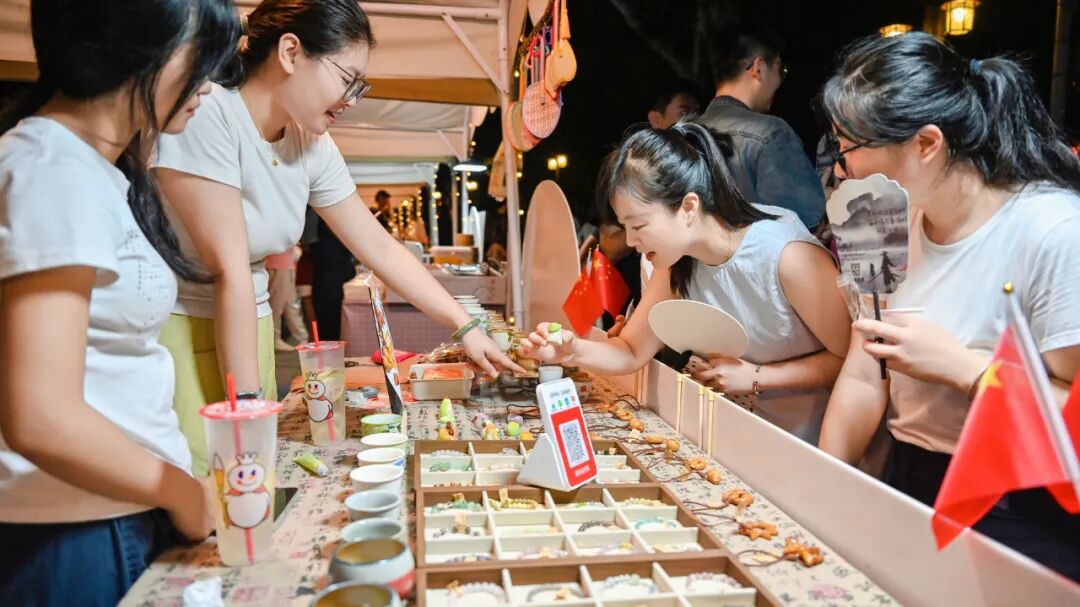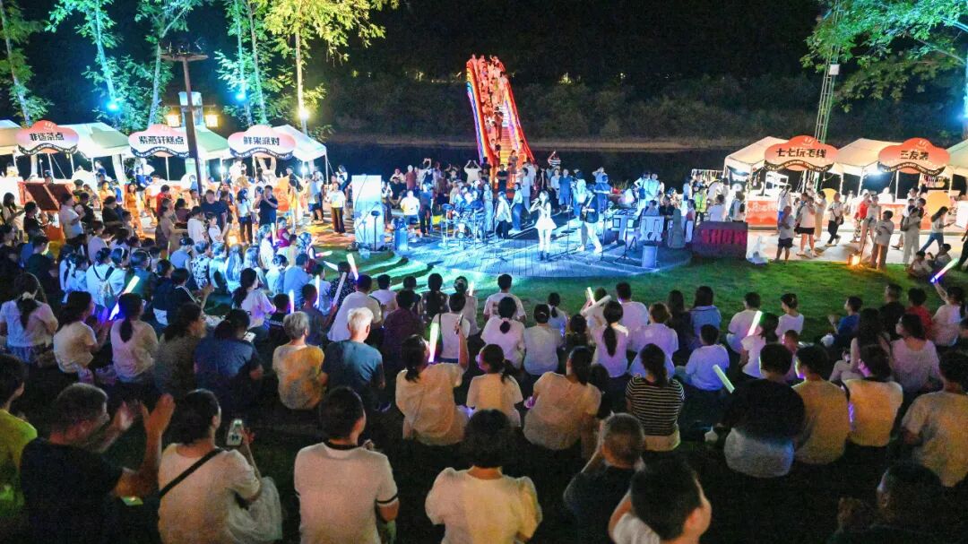 在武夷山崇陽溪畔,以“月滿河山 家國同慶”為主題的活動,通過業(yè)態(tài)融合、民謠演繹、非遺展示和特色美食,為游客獻上一場節(jié)日盛宴。(張筱惜 攝)