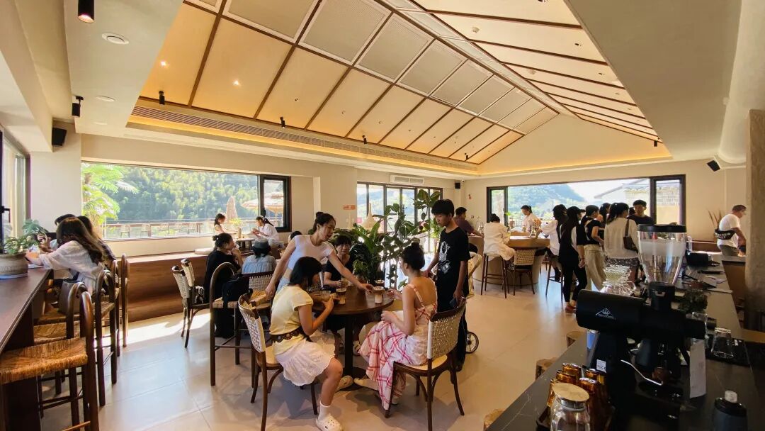 馬伏熹云灣景區(qū),游客在咖啡館度過悠閑時光