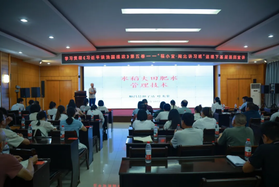 大武夷新聞網訊 10月10日,由中共南平市委宣傳部、中共南平市委講師團主辦,中共順昌縣委宣傳部承辦的學習貫徹《習近平談治國理政》第五卷——“福小宣·閩北講習班”送理下基層巡回宣講活動在虹潤公司舉行。來自全縣各鄉(xiāng)鎮(zhèn)(街道)的宣傳委員、分管農業(yè)的負責人以及種植戶代表等80余人齊聚一堂,通過“理論+產業(yè)+小故事”的宣講模式,推動黨的創(chuàng)新理論“飛入尋常百姓家”。