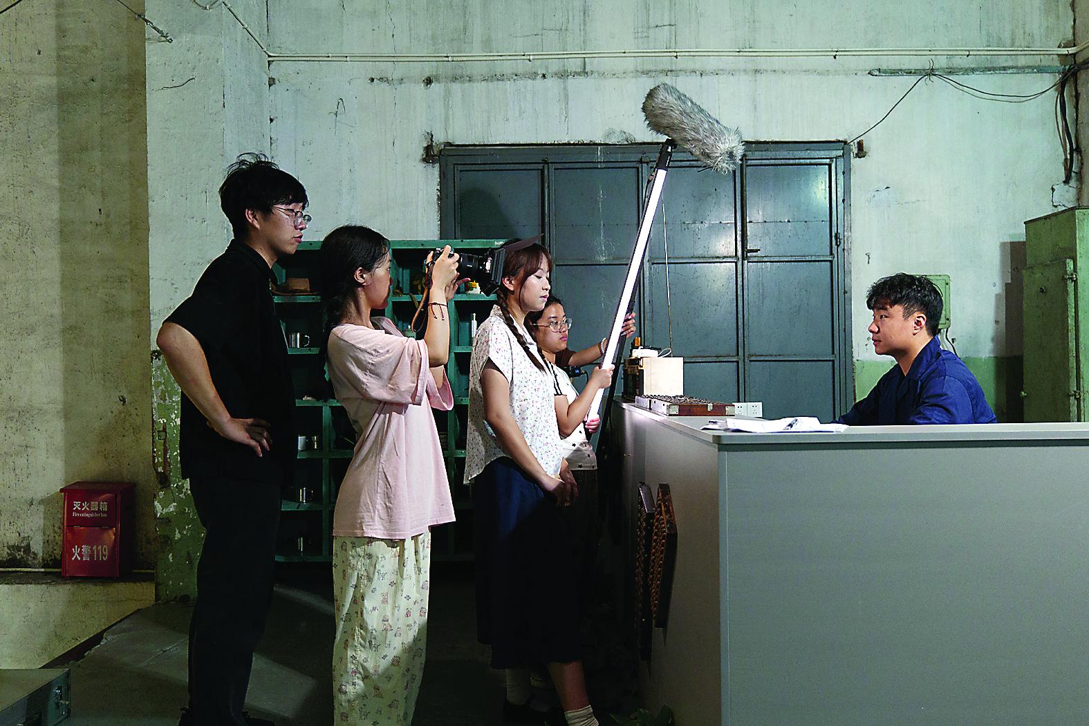在南紙1958工業(yè)記憶館二樓,陽光學院學生拍攝短劇。