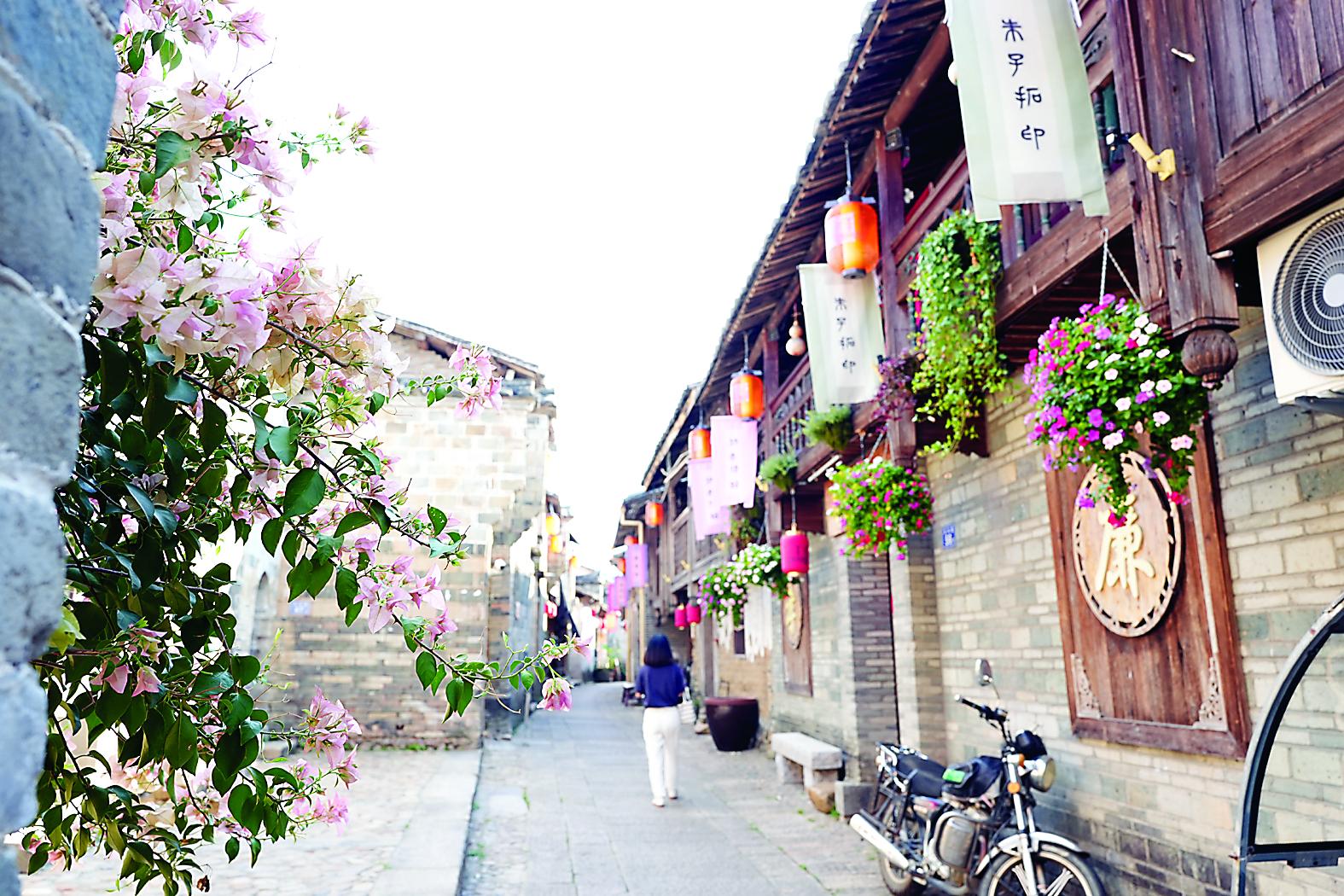 修葺一新的古街,在簇簇花卉的點綴下,更顯古樸雅致。