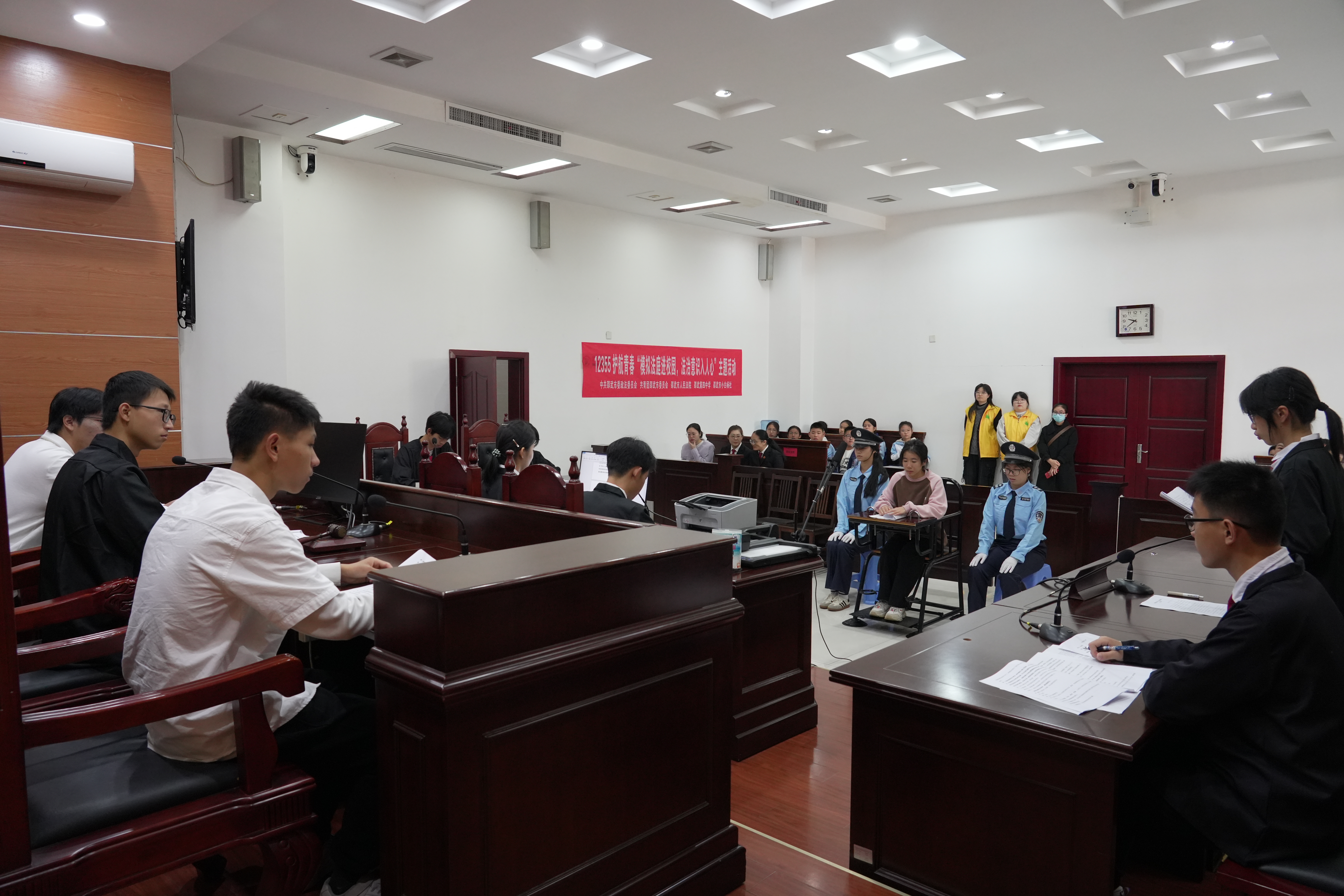 大武夷新聞網(wǎng)訊 為讓青少年沉浸式感受司法威嚴(yán),筑牢法治思想根基,11月17日,邵武市“12355護(hù)航青春——模擬法庭進(jìn)校園、法治意識(shí)入人心”主題活動(dòng)在邵武市人民法院溫情啟幕。13名高中學(xué)生化身“審判長(zhǎng)”“公訴人”“辯護(hù)人”等角色,全程參與完整庭審流程,在實(shí)踐中觸摸法律溫度。