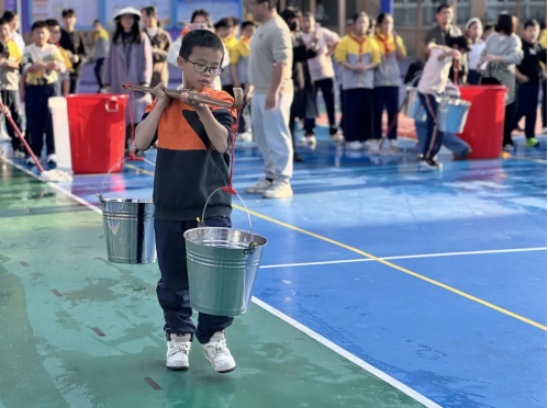 賽前,各班經(jīng)過(guò)充分準(zhǔn)備與選拔,各自推選出男、女生各6名選手代表班級(jí)出戰(zhàn)。一條10米長(zhǎng)的賽道,任務(wù)因年級(jí)而異:一年級(jí)進(jìn)行夾彈珠接力,考驗(yàn)手眼協(xié)調(diào);二年級(jí)沉穩(wěn)地單手提水疾走;三年級(jí)升級(jí)為端水接力,力求平衡與速度;四年級(jí)選手雙手拎桶,展現(xiàn)力量與技巧;五、六年級(jí)則體驗(yàn)了傳統(tǒng)的挑水接力,扁擔(dān)在肩,步伐穩(wěn)健。裁判團(tuán)隊(duì)一絲不茍,精確計(jì)時(shí)與稱重,確保了賽事的公平公正。