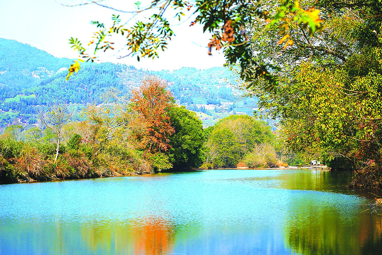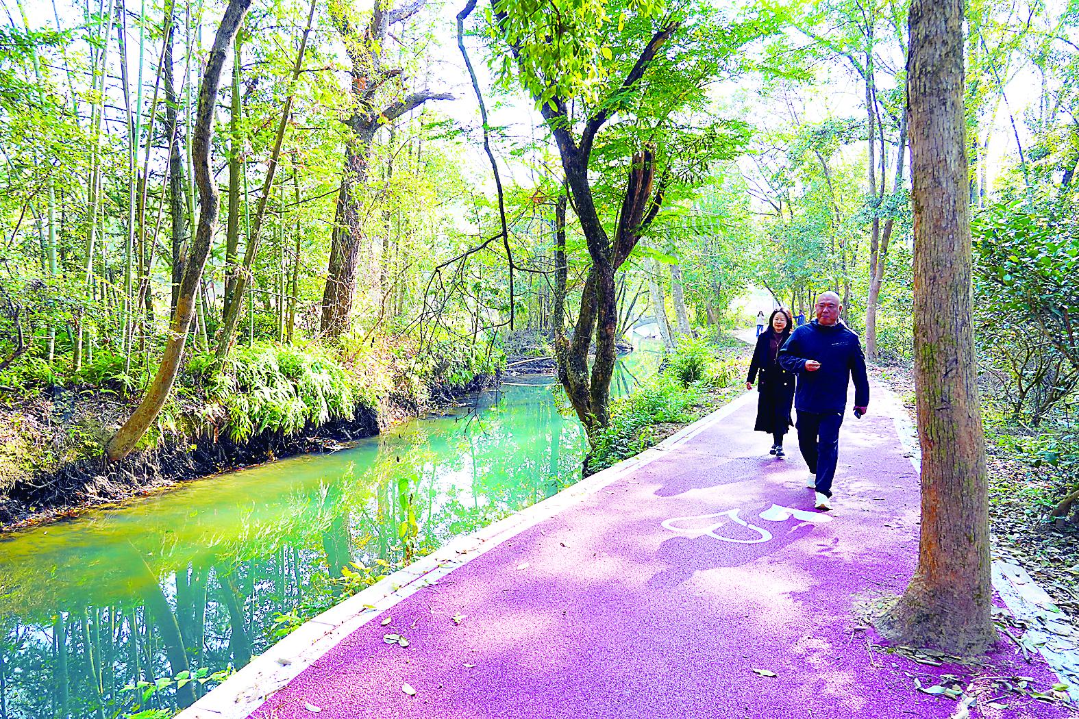 冬日和煦,陽光輕灑。漫步道依溪流延伸,宛如一條紅綢,穿梭在蒼郁的古樹林間,掠過清香隱隱的茶園,又在竹影婆娑與老樅水仙樹下悄然轉(zhuǎn)折,徐徐展開一幅自然與人文交織的畫卷。