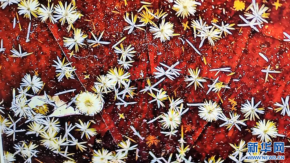 把建盞置于顯微鏡下,晶體炫目多彩。這只建盞釉面像漫天飄落的小雛菊。新華網(wǎng)發(fā)(南平市建陽區(qū)建盞文化產(chǎn)業(yè)研究發(fā)展中心供圖)