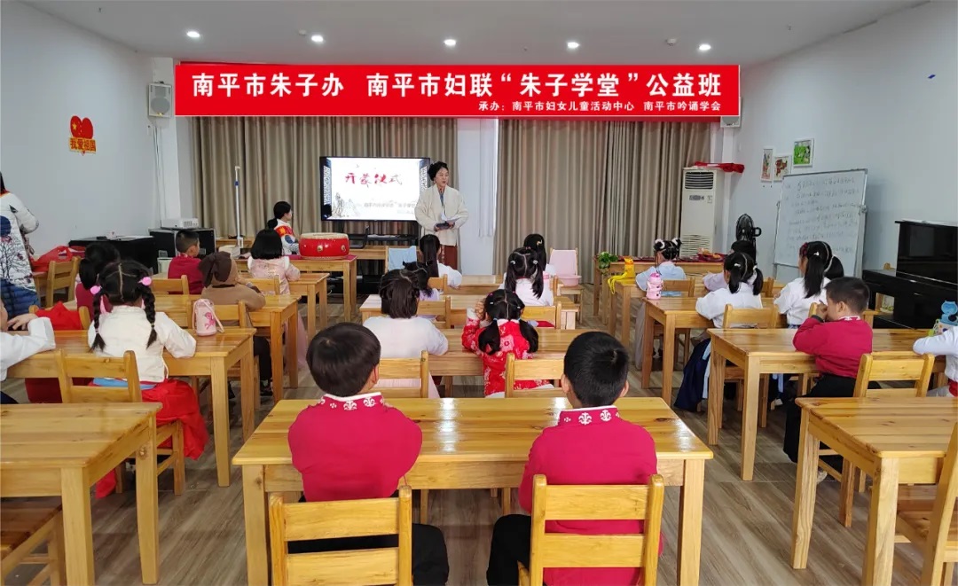 “尊師重道,世代迭傳,今日行禮,拜師求學(xué)……”一大早,響亮清脆的誦讀聲傳來,孩子們來到南平市婦女兒童活動(dòng)中心,開始一堂特別的“兒童益學(xué)堂·朱子學(xué)堂”周末公益課程。巾幗志愿者通過開講、領(lǐng)學(xué)方式,帶領(lǐng)孩子吟誦詩文,講述《煮蓮教子》《懸燈相望》《指日問天》等故事,加深他們對(duì)朱子文化的理解和體驗(yàn)。