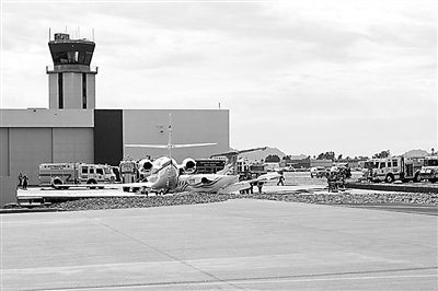 美國(guó)聯(lián)邦航空局10日證實(shí),兩架飛機(jī)當(dāng)日在亞利桑那州斯科茨代爾機(jī)場(chǎng)跑道上相撞。當(dāng)?shù)孛襟w報(bào)道說(shuō),事故已造成至少1人死亡、3人受傷。 (新華社/美聯(lián))