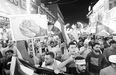 當(dāng)日,大量伊拉克民眾涌上巴格達街頭參加游行,抗議以色列空襲加沙地帶。