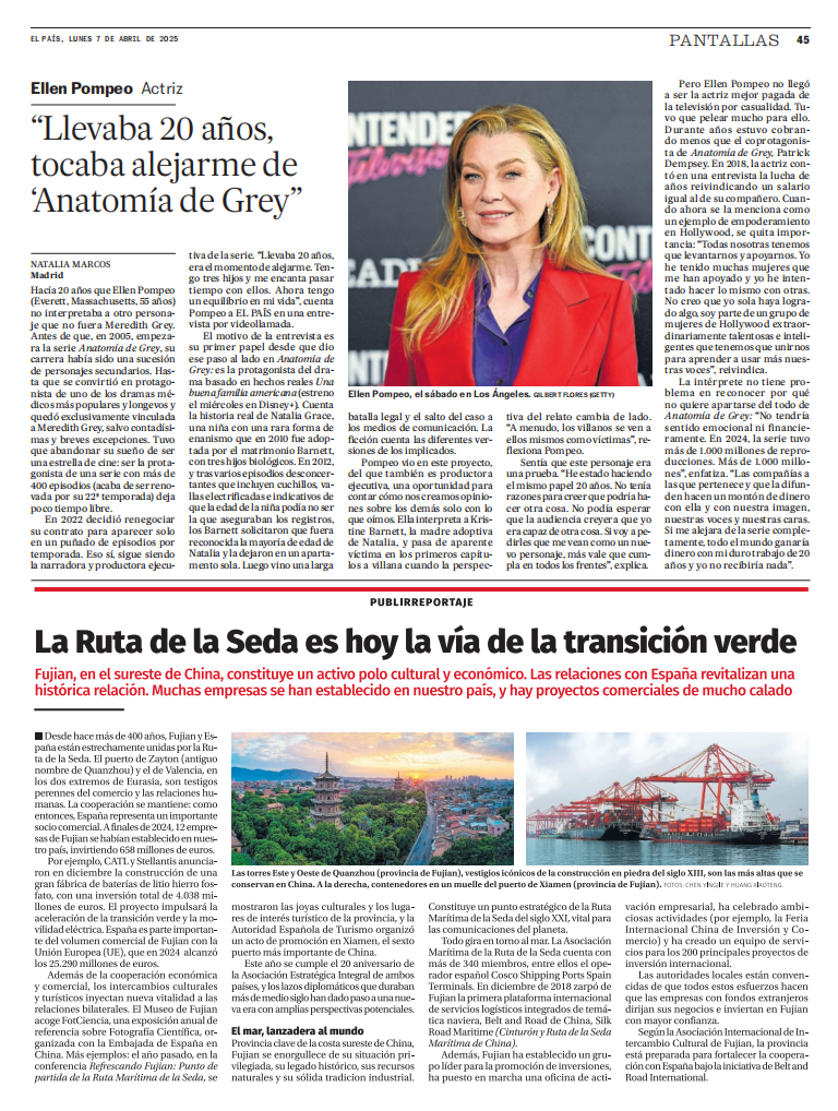 近日,福建代表團(tuán)訪問(wèn)西班牙期間,西班牙主流綜合性日?qǐng)?bào)《國(guó)家報(bào)》發(fā)表題為《絲路為媒,讓友誼之樹常青》專題文章,全面介紹了福建與西班牙在經(jīng)貿(mào)往來(lái)和人文交流方面所取得的成果,并表達(dá)了對(duì)進(jìn)一步深化“海上絲綢之路”合作的期待。