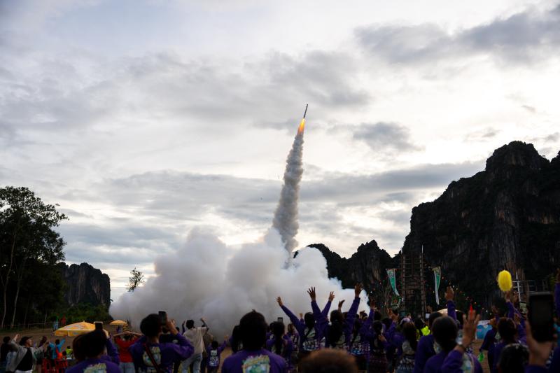 “火箭節(jié)”又有著“高升節(jié)”“火炮節(jié)”等別稱,是老撾的民間傳統(tǒng)節(jié)日。當(dāng)?shù)孛癖娡ㄟ^(guò)向高空發(fā)射自制的火箭來(lái)祈求風(fēng)調(diào)雨順,希望在農(nóng)忙時(shí)節(jié)獲得充沛雨水。 (新華社發(fā) 凱喬 攝)