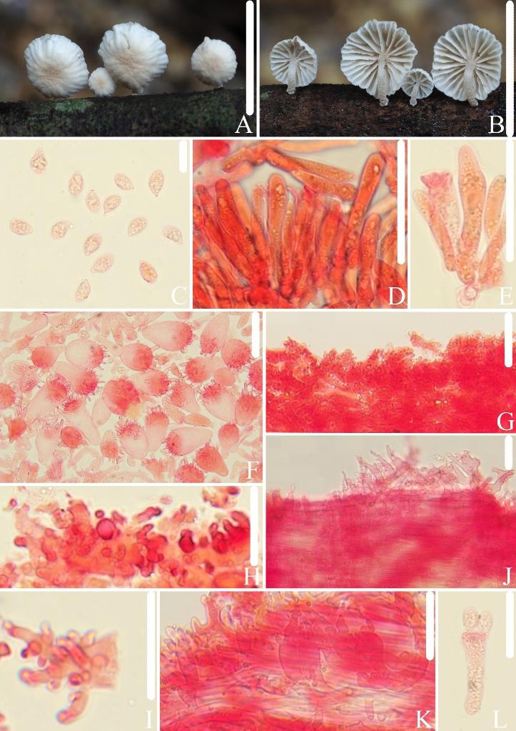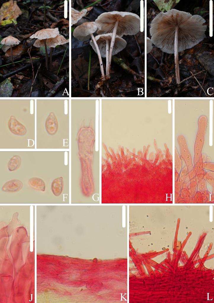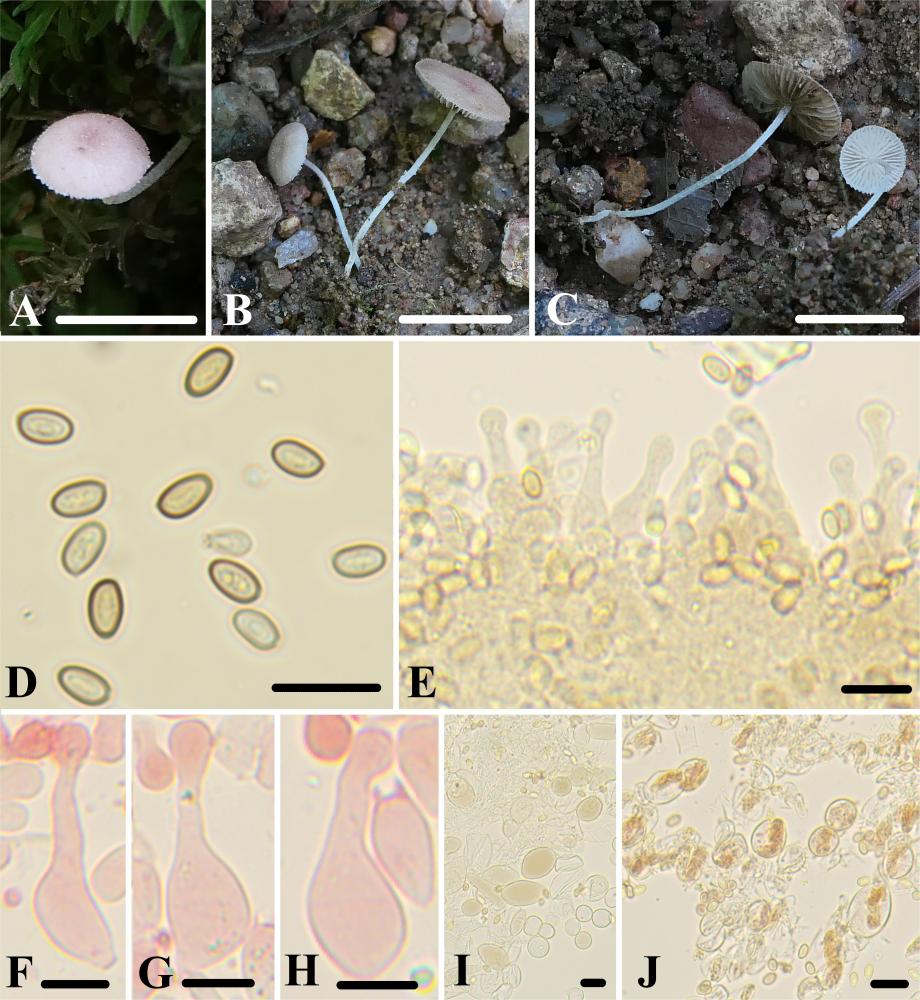 江西農(nóng)業(yè)大學生物科學與工程學院副教授顏俊清介紹,亞多紋擬金錢菌的命名源于其與多紋擬金錢菌宏觀形態(tài)相似,但具有緣生囊狀體;寬孢擬金錢菌的命名源于其屬于枝生擬金錢菌復合群,與復合群內物種相比,其具有明顯更寬的孢子;球鱗小蘑菇的命名源于其鱗片由球囊狀細胞組成。