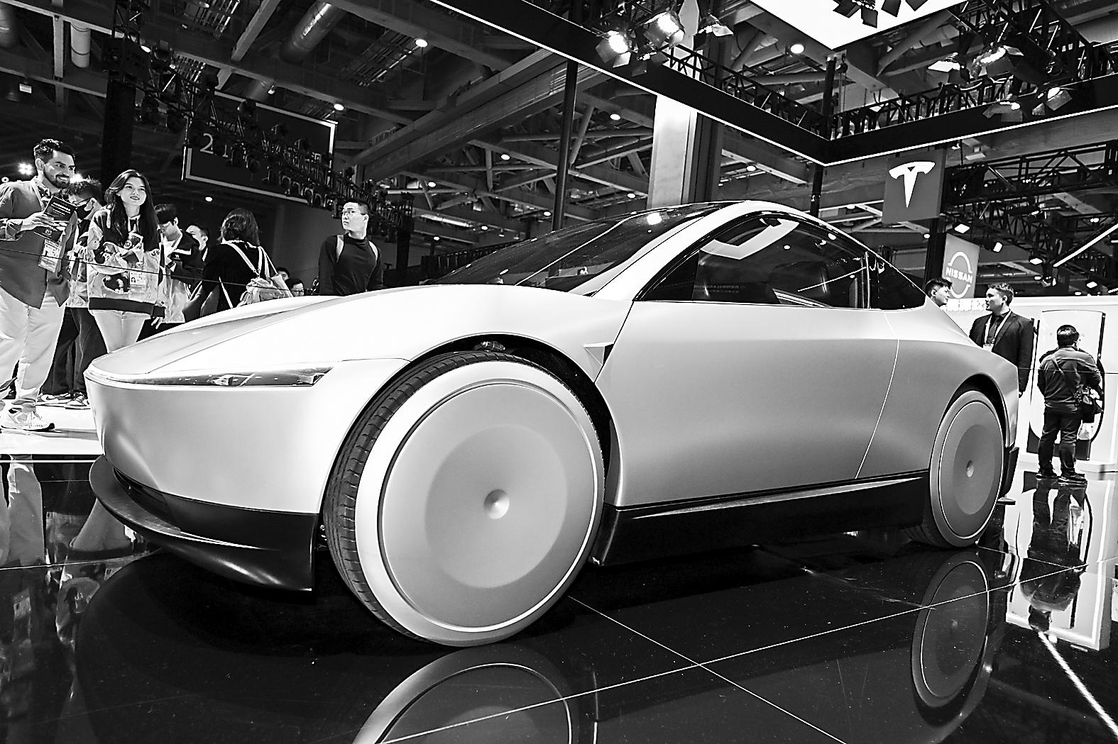 11月8日,在第八屆進博會汽車及智慧出行展區(qū)特斯拉展位,觀眾在參觀特斯拉賽博無人駕駛電動車。(新華社記者 蔡湘鑫 攝)
