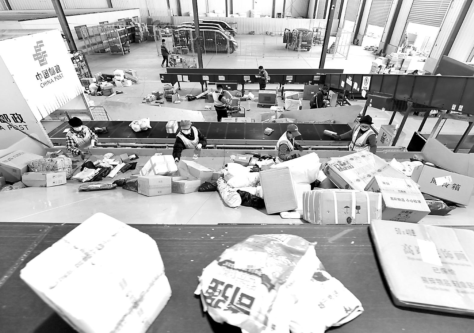 11月11日,工作人員在中國郵政集團有限公司河北省石家莊市欒城區(qū)分公司分揀快遞。 ( 新華社發(fā) 李明發(fā) 攝)