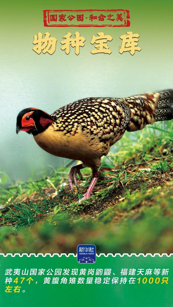 有“雙世遺”之稱的武夷山國家公園,竹林蒼翠,鳥鳴啁啾,溪水潺潺,是大自然與人類文明攜手繪成的精美畫卷。在這里,千萬年的丹霞地貌上演著“水墨武夷”奇幻秀,武夷巖茶在巖縫中汲取天地精華沉淀巖骨花香,九曲溪如同綠絲帶纏繞在赤色群峰間,12000余種野生動植物盡情釋放生命的張力,讓你每一步都可能與“自然精靈”撞個滿懷。讓我們跟隨這組海報,走進這片“會呼吸”的山水,一起邂逅詩意盎然的生靈樂園。