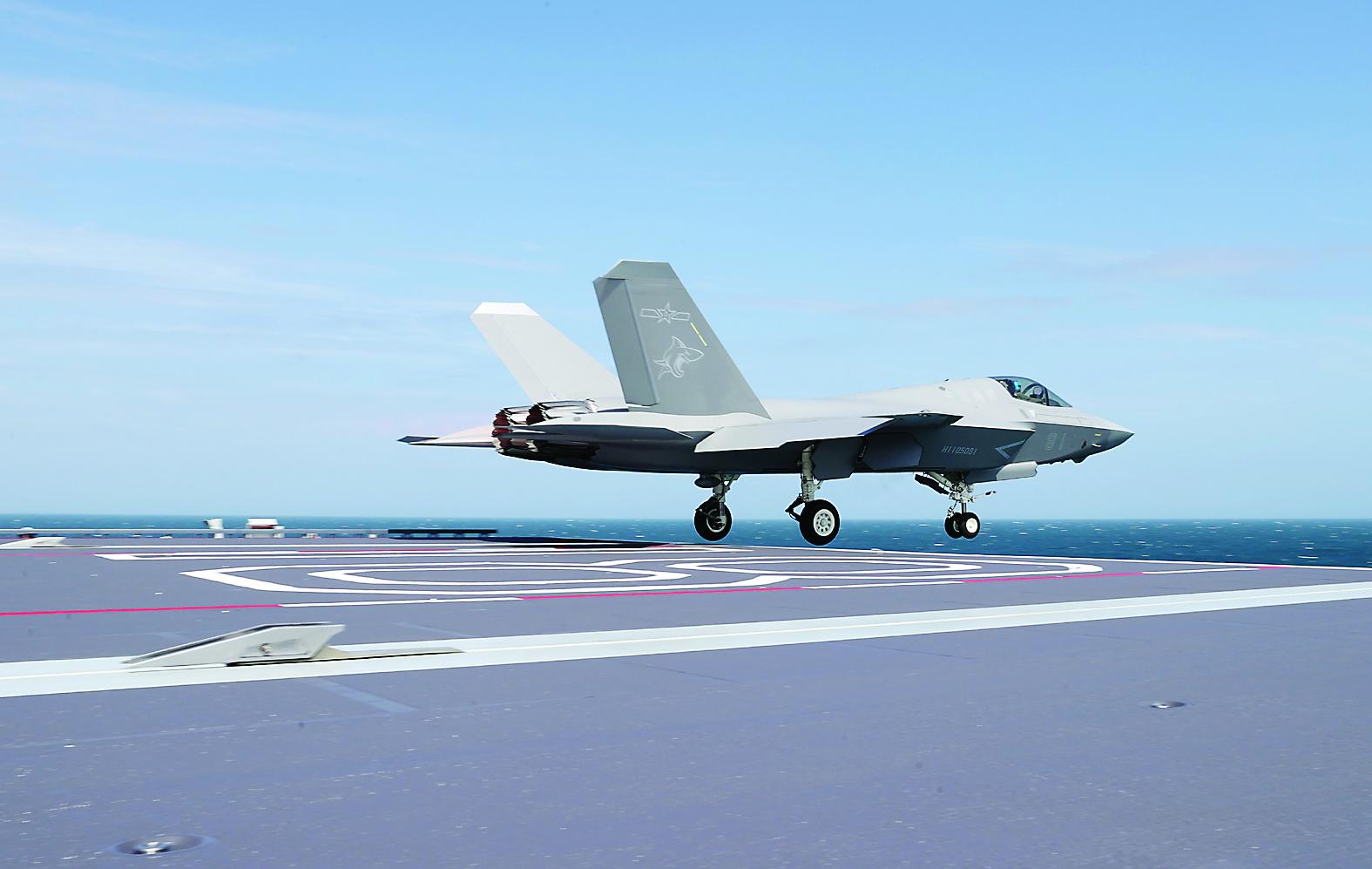 這是殲-35艦載機彈射起飛。(新華社發(fā) 王健 攝)