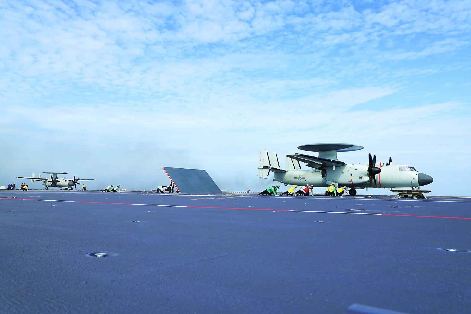 這是空警-600艦載固定翼預(yù)警機接續(xù)彈射起飛。 (新華社發(fā) 常新鵬 攝)
