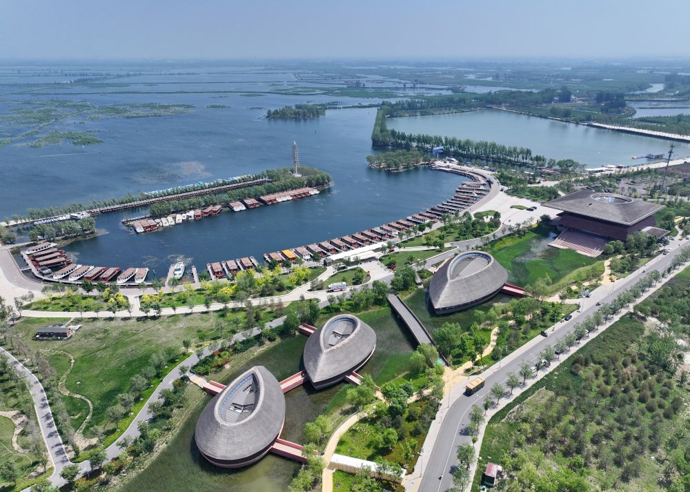 這是河北雄安新區(qū)白洋淀旅游碼頭景色(2024年5月8日攝,無(wú)人機(jī)照片)。新華社記者 牟宇 攝