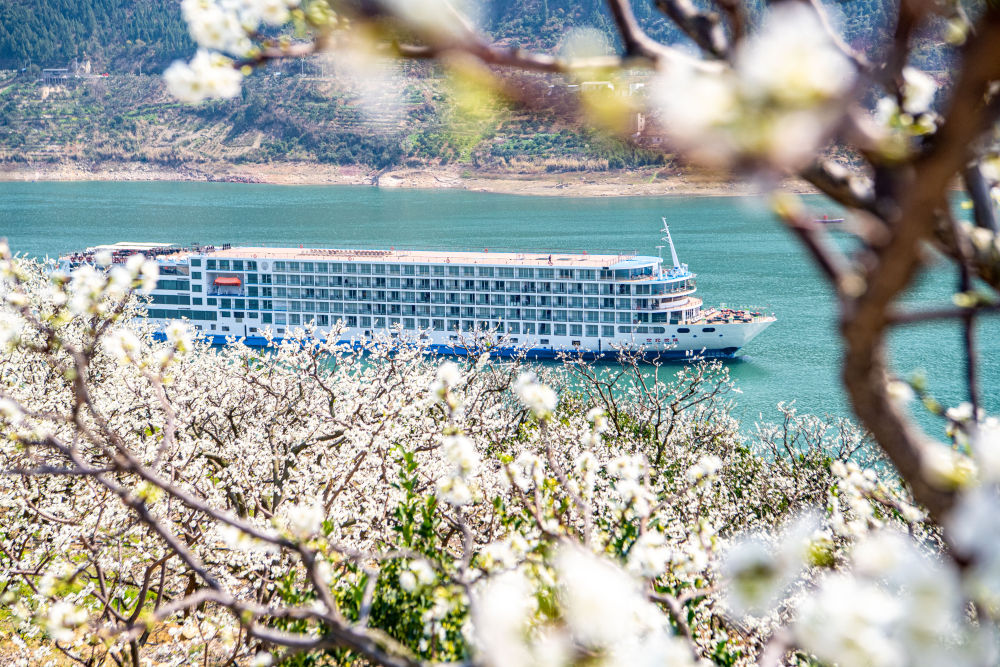 這是2025年3月21日拍攝的重慶市巫山縣曲尺鄉(xiāng)長(zhǎng)江兩岸的萬(wàn)畝李花。新華社記者 唐奕 攝