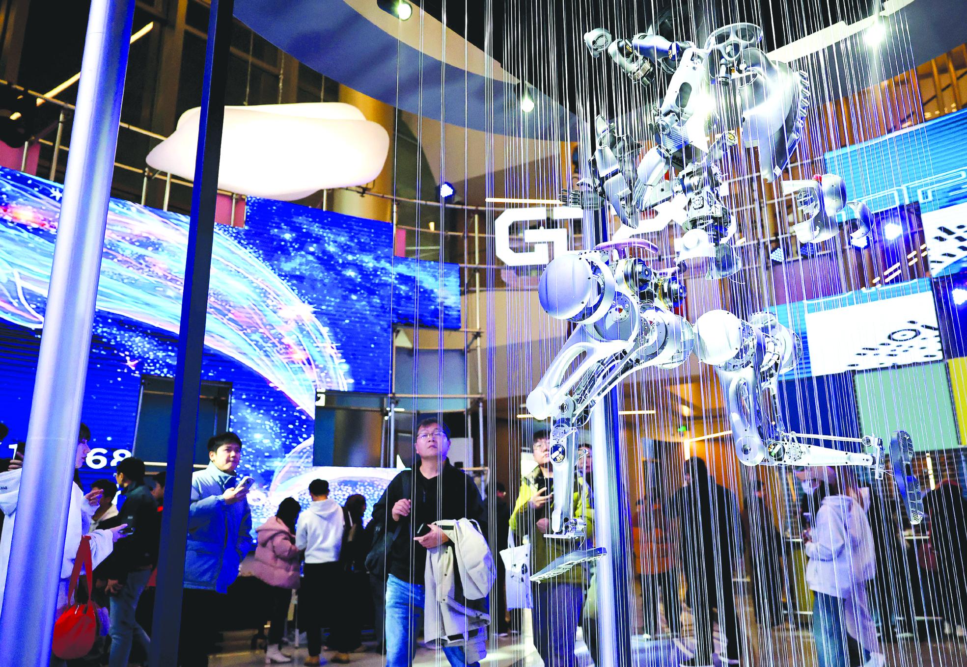 12月12日,參觀者在機(jī)器人展示裝置前駐足觀看。當(dāng)日,2025全球開(kāi)發(fā)者先鋒大會(huì)暨國(guó)際具身智能技能大賽在上海張江科學(xué)會(huì)堂舉行。大會(huì)設(shè)置“競(jìng)技場(chǎng)”“實(shí)驗(yàn)工坊”“思辨廣場(chǎng)”“節(jié)日”等多元板塊,打造技術(shù)比拼、思想交鋒、產(chǎn)業(yè)展示與科普體驗(yàn)全面融合的平臺(tái)。 (新華社記者 方喆 攝)