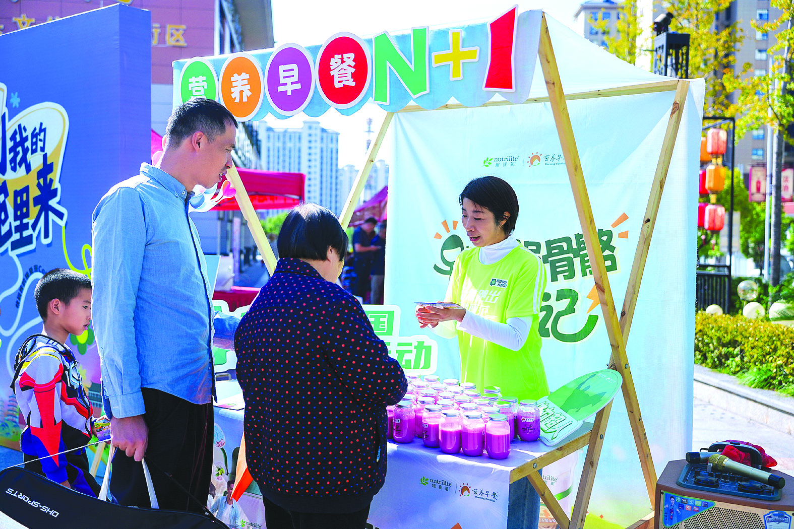 安利志愿者向市民朋友宣傳營養(yǎng)早餐